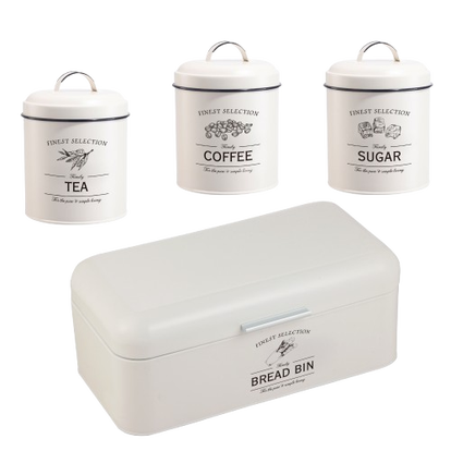 De Herzberg HG-04425: 4-delige Vintage Broodtrommel en Blikset combineert tijdloze Sage Green elegantie met robuuste stalen constructie, waardoor gebakken goederen langer vers blijven en de organisatie van de keuken wordt verbeterd met zijn charmante vintage design. Met een ruime broodtrommel en luchtdichte blikken voor koffie, thee en suiker, zorgt deze duurzame set voor zowel bruikbaarheid als stijl, waardoor het een perfecte aanvulling is op elke keuken of een attent cadeau voor vintageliefhebbers.