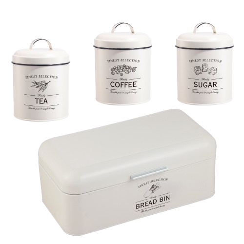 4-delige vintage broodtrommel en -busset biedt een elegante oplossing voor het bewaren van de versheid met zijn luchtdichte bussen en optimale luchtcirculatieontwerp, waardoor gebakken goederen langer vers blijven en de organisatie van uw keuken wordt verbeterd. De duurzame gepoedercoate stalen constructie en het compacte ontwerp combineren vintage charme en moderne bruikbaarheid, besparen ruimte op het aanrecht, waardoor het zowel een stijlvol middelpunt als een functionele opslagoplossing is.