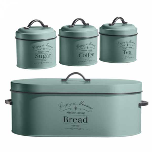 Herzberg 4-delige Vintage Broodtrommelset - Saliegroen